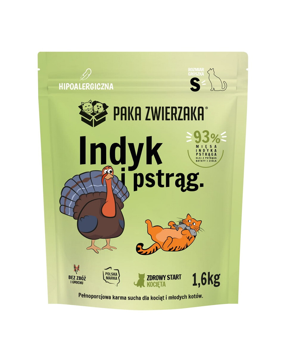 Postarejte se o zdraví a energii svého mladého kocoura díky kompletnímu, bezobilnému suchému krmivu Paka Zwierzaka s krůtou a pstruhem. To je ideální volba pro koťata a mladé kočky – malé, pohodlné granule ve velikosti S skvěle vyhovují jejich potřebám.