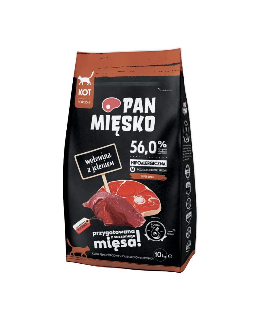 Seznamte se s hypoalergenním suchým krmivem pro kočky Pan Mięsko. Vyznačují se pečlivě vybraným masem se šťavnatými polskými jablky, zdravou zeleninou a cennými živinami, které pozitivně ovlivní zdraví a kondici vaší kočky. Naše receptury připravili odborníci, aby vašemu čtyřnohému společníkovi poskytli přesně to, co potřebuje. Vaše kočka si zaslouží to nejlepší.