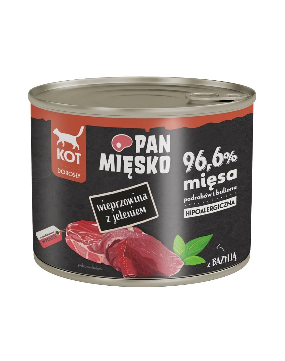 Pan Mięsko je perfektní kombinací vysoce kvalitních bílkovin, aromatických bylin a přírodních doplňků, které zajistí zdraví, vitalitu a pohodu vaší kočky. Každá konzerva je zárukou kvality, chuti a kočičí spokojenosti – přímo z polské kuchyně!