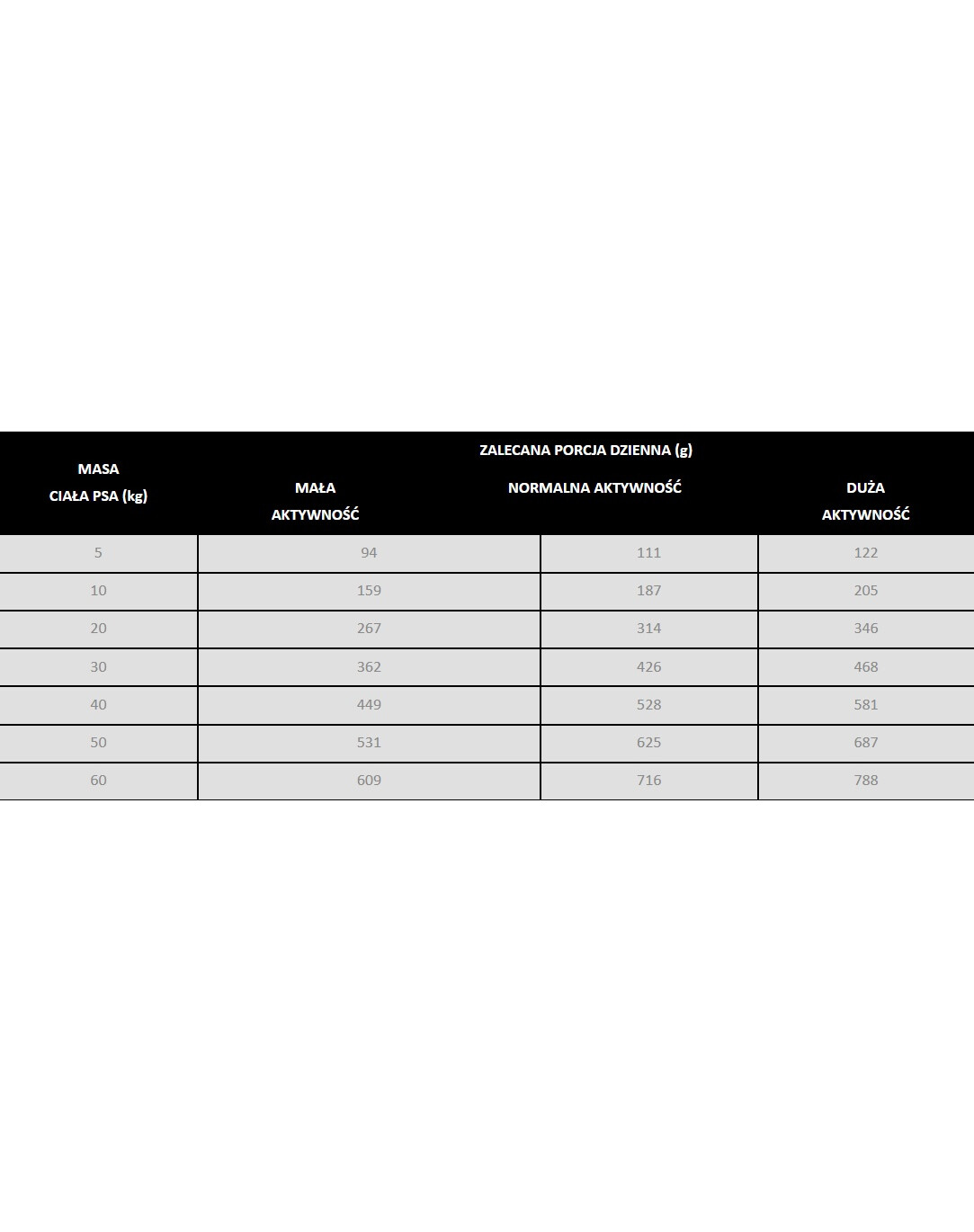 Denní potřeba uvedená v tabulce je orientační. Každý pes je jiný a má jiné potřeby. Pozorujte svého mazlíčka a podle potřeby mu zvyšujte nebo snižujte denní porci krmiva. Nezapomeňte mu zajistit stálý přístup k čerstvé vodě!