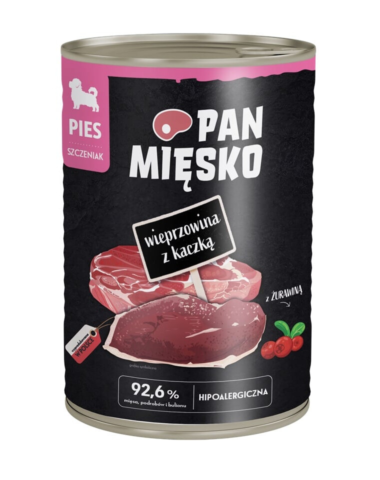 Poznejte vysoce kvalitní mokrá krmiva pro psy Pan Miésko. Vyrábějí se z pečlivě vybraného masa s přídavkem šťavnatých polských jablek a cenných přísad, jako jsou bylinky nebo semena, které pozitivně ovlivňují zdraví a kondici vašeho psa. Naše receptury byly připraveny odborníky, aby dodaly vašemu čtyřnohému společníkovi přesně to, co potřebuje. Váš pes si zaslouží to nejlepší.