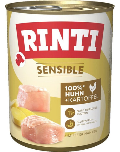 58 % kuřecí maso (svalovina, žaludek, srdce, játra), 7 % brambory, minerální látky