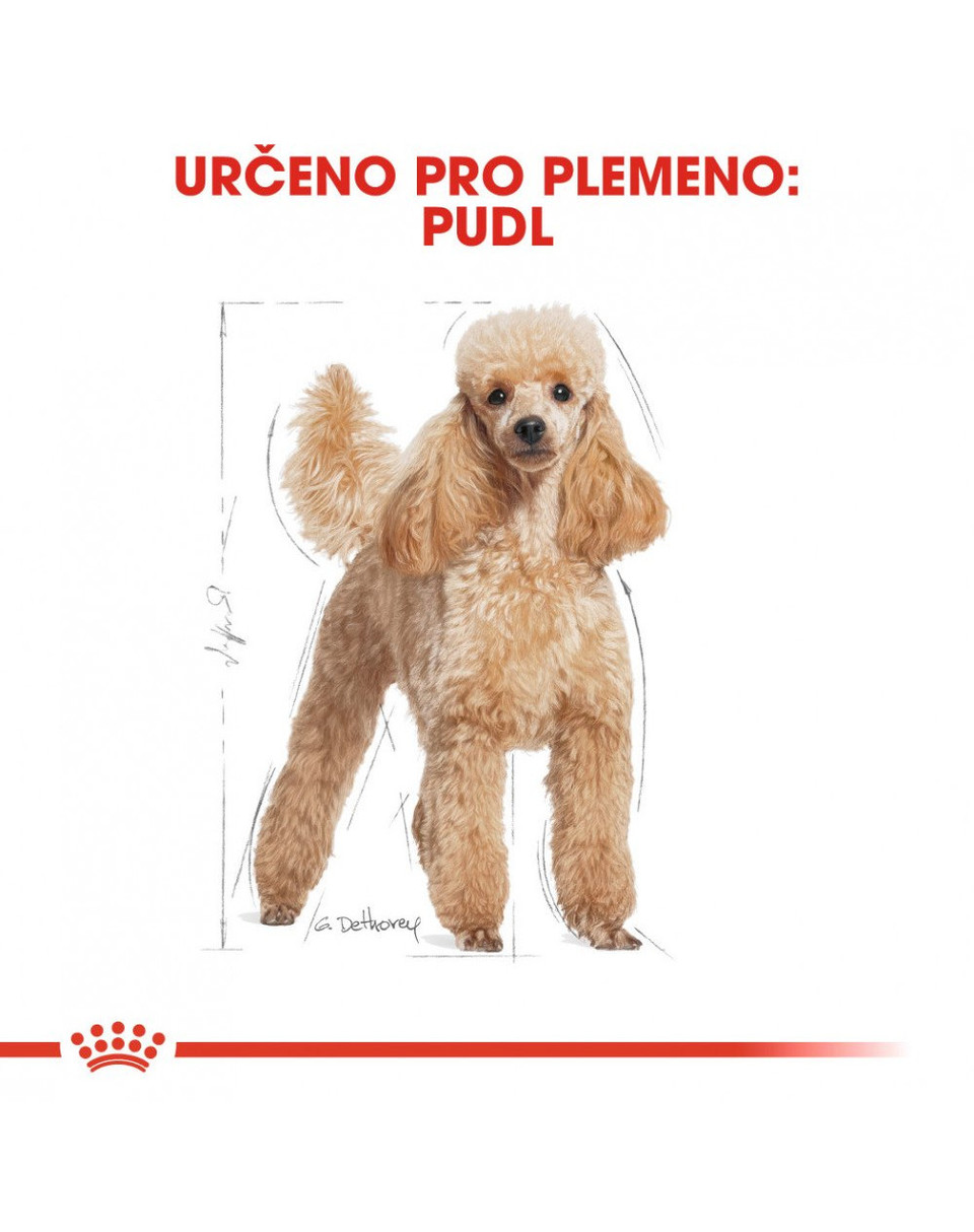 Pudl má velmi jemnou, vzdušnou a kudrnatou srst složenou z vlněných chlupů. Pudlova srst neustále dorůstá, a proto granule obsahují omega-3 mastné kyseliny EPA a DHA a olej z brutnáku lékařského. Tyto živiny, společně s upraveným obsahem bílkovin, podporují zdravý růst srsti a zajišťují její výživu.Díky obsaženým chelátorům vápníku exkluzivně vytvořená granule krmiva podporuje hygienu ústní dutiny , protože zpomaluje tvorbu a usazování zubního kamene. Navíc toto krmivo také udržuje svalový tonus.
