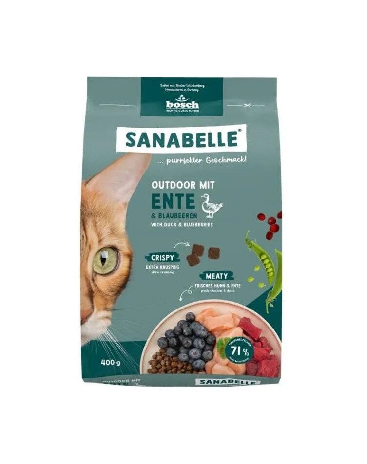 Sanabelle Outdoor s kachnou je plnohodnotné krmivo vytvořené speciálně pro venkovní a aktivní kočky, jejichž energetické potřeby jsou vyšší než u domácích mazlíčků. Formule obsahující snadno stravitelnou kachnu a další porce bílkovin a tuků podporuje energii, vytrvalost a zdraví v proměnlivých podmínkách. Vyvážené složení bohaté na vitamíny a stopové prvky se stará o imunitu, metabolismus a zdravou srst.