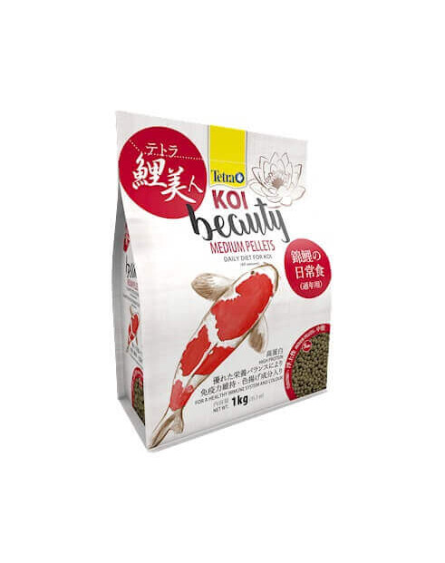 Pelety Tetra Koi Beauty Medium poskytují kaprům koi všechny živiny, které jsou nezbytné pro jejich dlouhý a zdravý život. Druhově specifické složení krmiva a nejvyšší kvalita zajišťují ideální podmínky pro intenzivní vybarvení a zdravé ryby. Potraviny obsahují bílkoviny, které jsou zodpovědné za správný růst buněk. Klíčové živiny s vysokým obsahem bílkovin, vitamínů a omega-3 mastných kyselin dodávají kaprům koi energii potřebnou pro správný růst. Přídavek beta-glukanu pomáhá koi kaprům vyvinout zdravý imunitní systém v mladém věku, který je účinně chrání před nemocemi. Krmivo obsahuje také sacharidy (další z hlavních zdrojů energie), které jsou pro koi kapry ideální. Přídatné látky, jako je beta-karoten (součást např. mrkve a batátů), zároveň zvýrazňují zbarvení ryb. Vysoká kvalita surovin má velký vliv na optimální využití potravin. Složky jsou dobře stravitelné a také pomáhají udržovat čistou a kvalitní vodu. Pelety Tetra Koi Beauty Medium jsou vyváženým základním krmivem pro zdravý vývoj koi kaprů (od 20 cm délky).
