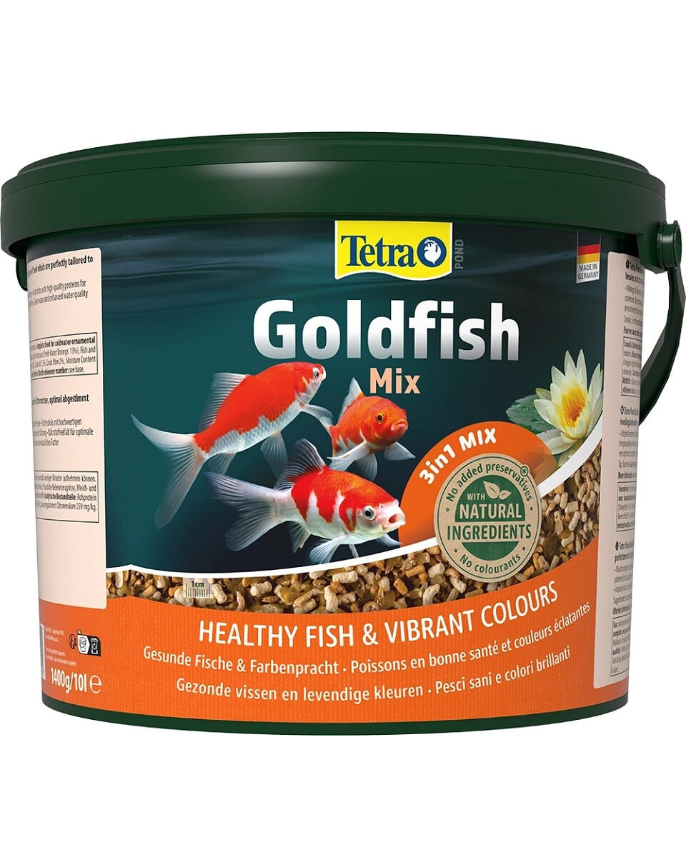 Tetra Pond Goldfish Mix je vyvážené a kompletní krmivo vhodné pro všechny druhyzlatých rybek. Obsahuje základní živiny pro správný růst a optimální kondici. Směs obsahuje vysoce kvalitní bílkoviny pro stimulaci růstu, nenasycené mastné kyseliny pro více energie a různé důležité živiny potřebné pro vyváženou stravu.