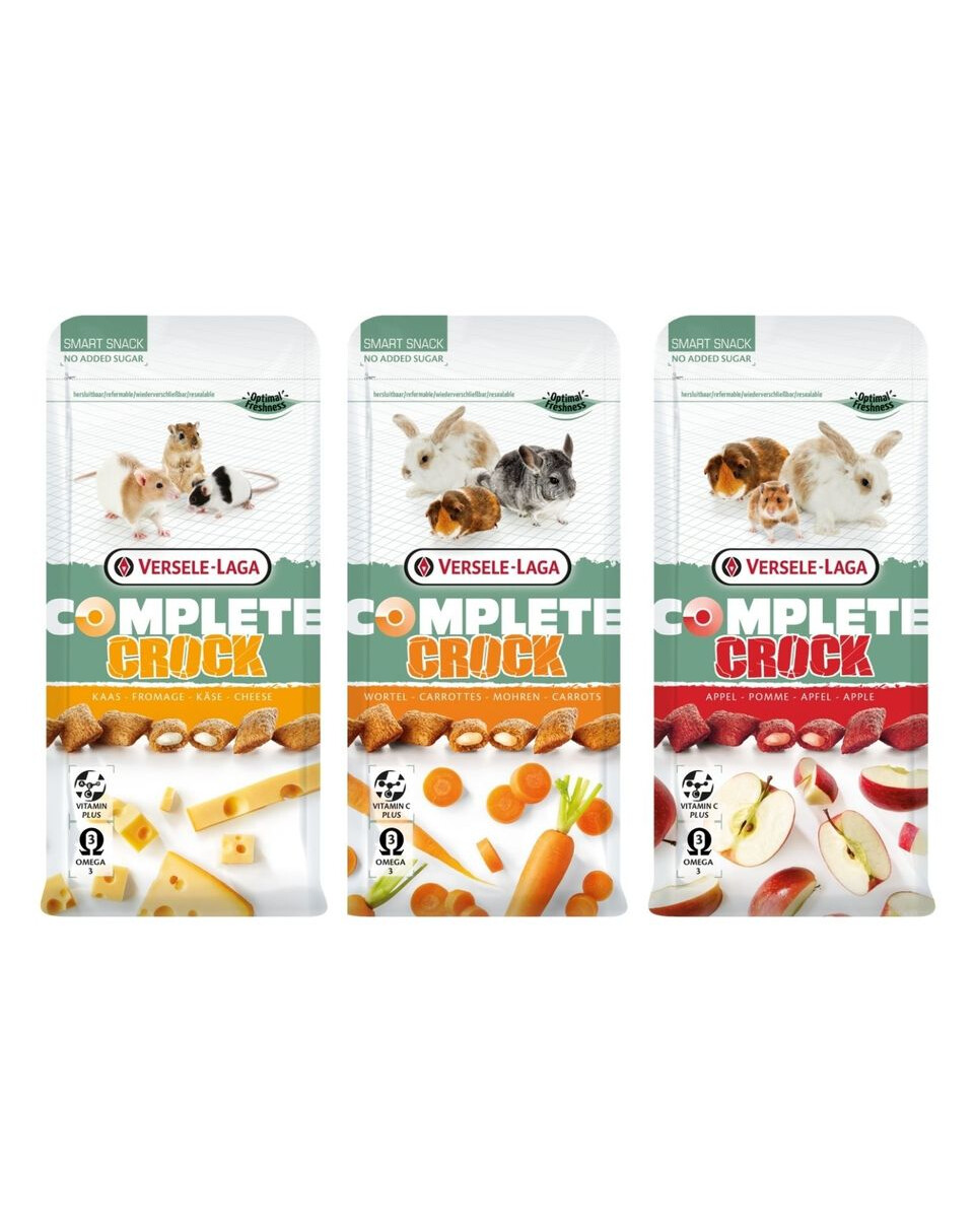 Versele-Laga Complete Crock Apple je chutná a zdravá svačinka pro králíky a různé hlodavce. Křupavá skořápka stimuluje kousací pud, jemná náplň s příchutí jablka byla obohacena o vitamíny a kyseliny Omega 3. Crocks jsou lehce stravitelné, bez přídavku cukru, takže jsou ideální svačinou pro vašeho mazlíčka.