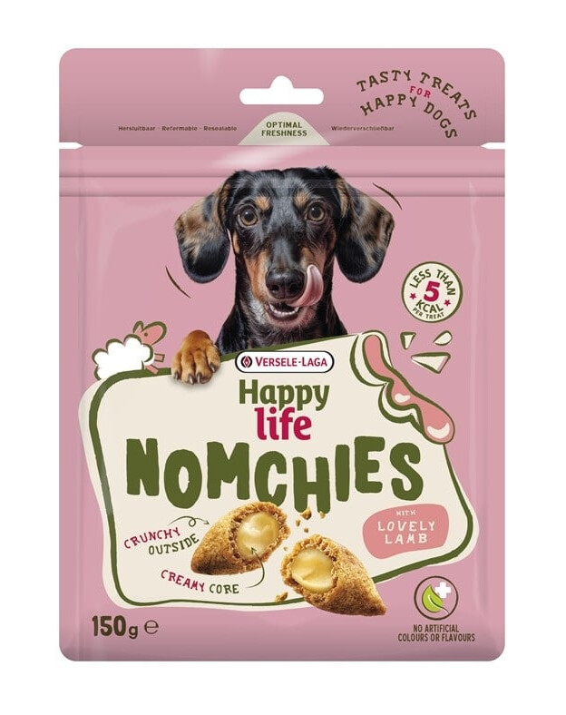 Happy Life NOMCHIES s LÁSKYPLNOU JEHNĚTINOU je křupavý pamlsek pro psa s krémovou náplní.