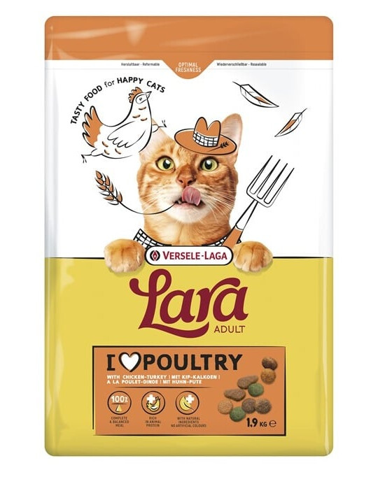 Dejte svému kočkovi vše, co potřebuje, ve formě, kterou miluje – Lara Adult Turkey & Chicken je kompletní suché krmivo s výjimečnou chutí kuřete a krůty. Zajišťuje dospělým kočkám kompletní a vyváženou výživu každý den, pečuje o jejich zdraví, energii a vitalitu.