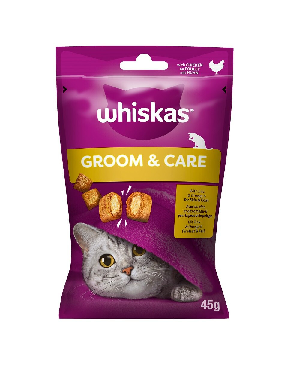 WHISKAS Healthy Shine s kuřecím masem je lahodná a zdravá svačinka v podobě křupavých těstovin s krémovou náplní. Jejich složení bylo navíc obohaceno o minerály a zelený čaj, který je přirozeným zdrojem antioxidantů. Obsah zinku a omega-6 kyselin podporuje zdravou kůži a srst vašeho mazlíčka. S krmivem WHISKAS® Healthy Shine uděláte své kočce nejen velkou radost během dne, ale především se postaráte o její zdraví. Vaše kočka bude vrnět ještě víc!