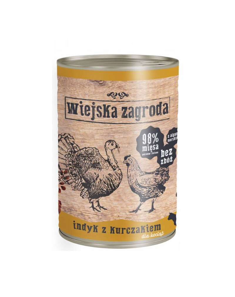 Složení: krůtí maso 35 % (z toho cca 80 % svaloviny a srdce, cca 20 % jater), kuřecí maso 35 % (100 % svaloviny), krůtí a kuřecí vývar 28,4 %, minerální látky 1 %, lososový olej 0,5 %, spirulina 0,1 %.