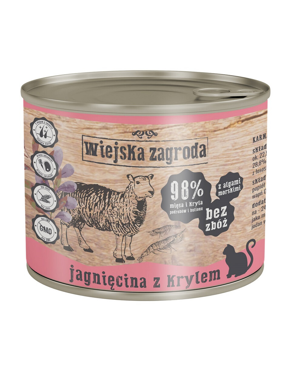 Konzerva bez obilovin pro kočky s jehněčím masem.
