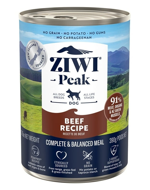 Krmivo bohaté na vlhkost obsahující 91 % hovězího masa, orgány, kosti a novozélandské zelené mušle, navržené tak, aby vyhovovalo biologickým potřebám vašeho psa ve stravě bohaté na maso. Hovězí maso z volného chovu, pěstované eticky po celý rok na novozélandských pastvinách. Chováno bez přídavku hormonů, antibiotik a růstových stimulantů. Žádné složky s vysokým GI, včetně obilovin, bramborového škrobu nebo tapioky. Bez umělých konzervačních látek a nežádoucích pojiv, jako je karagenan, agar a gumy. Přírodní zdroj glukosaminu a chondroitinu pro dlouhodobé zdraví a pohyblivost kloubů.
