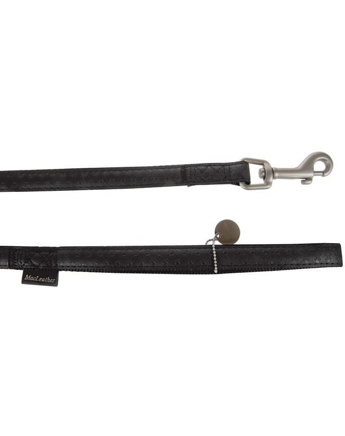 Stylové a funkční vodítko, které kombinuje odolnost s estetickým vzhledem. Vnější vrstva vyrobená z vysoce kvalitní ekokůže vypadá elegantně a je příjemná v ruce, zatímco vnitřní nylonový popruh poskytuje odolnost proti roztržení a oděru.